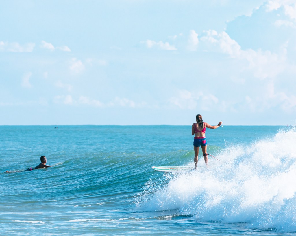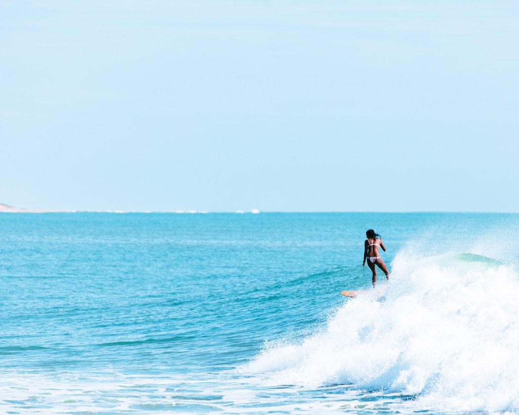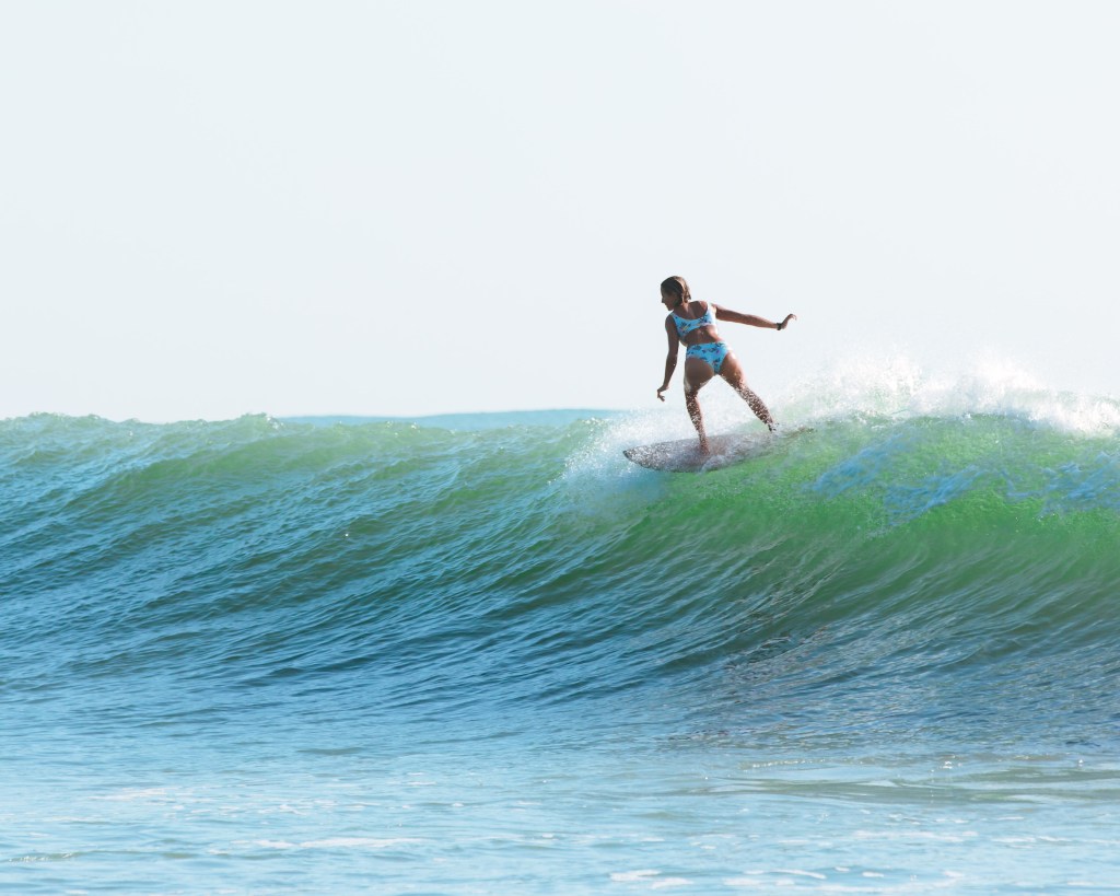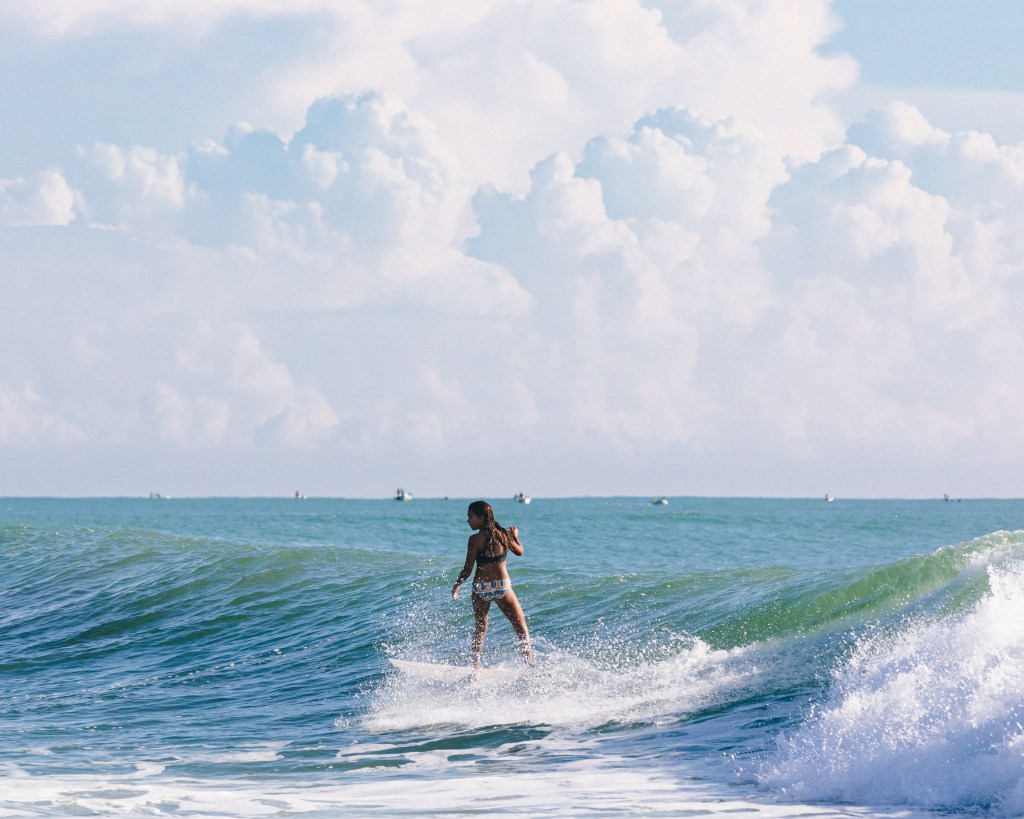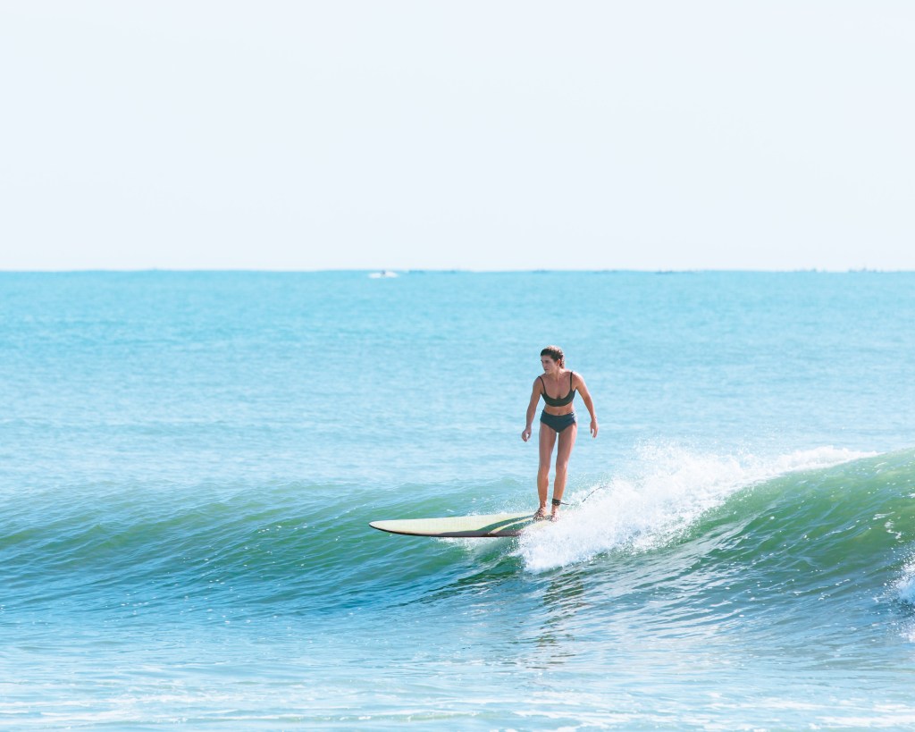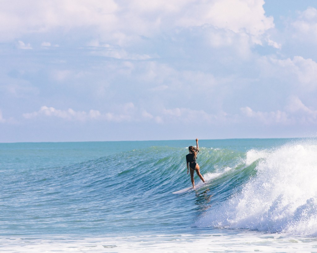 Not that Iโve done any scientific research but, thereโs a lot of photos out there with a woman standing on a beach next to a surfboard. Maybe sheโs even in the water with that surfboard, usually laying on top of it with one foot in the air and resting her tilting head in her hand.