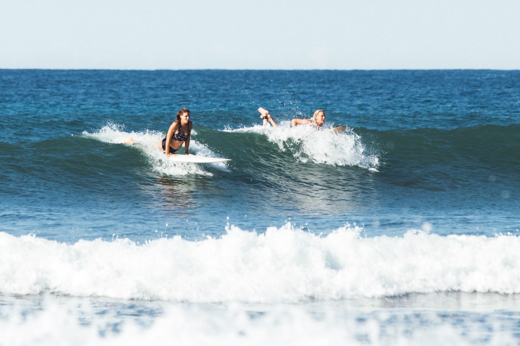 Surfing during surf lesson.