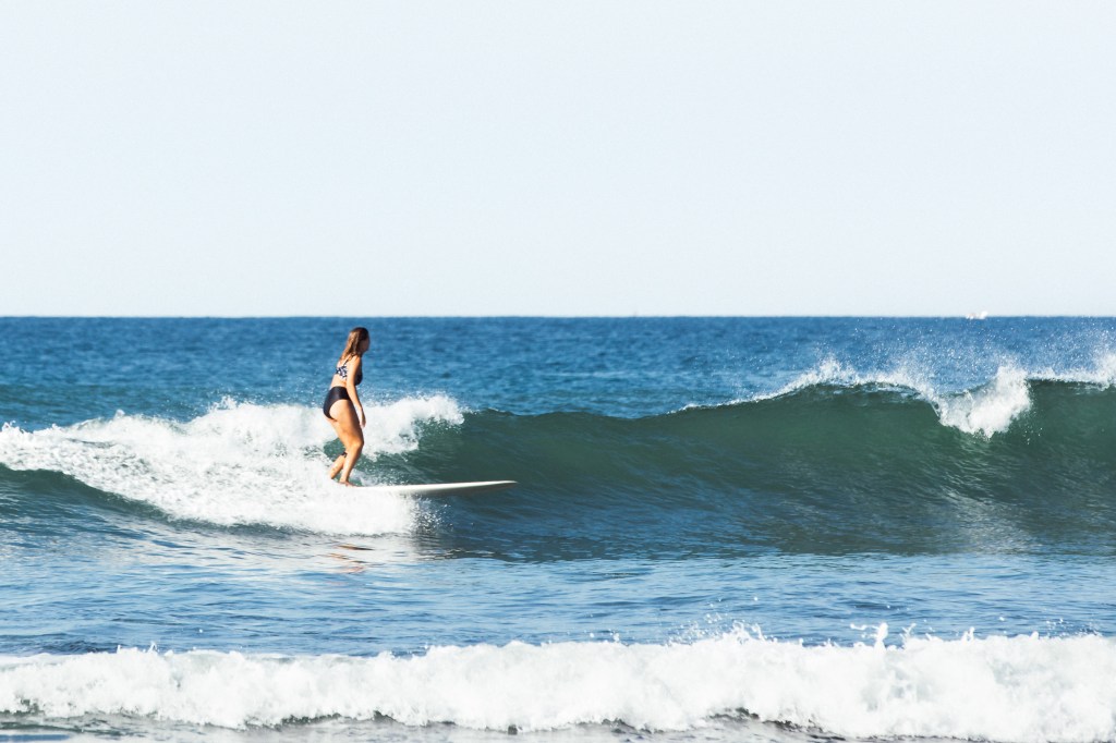 Getting up. This surf spot is actually two, one in front of the pier and one close to Parrot Rock.